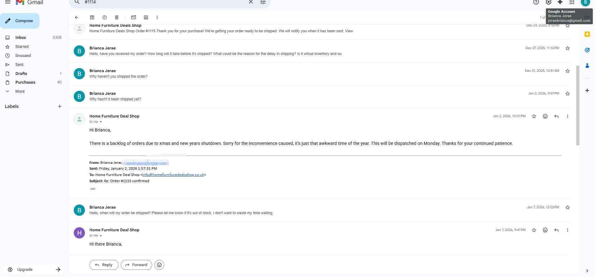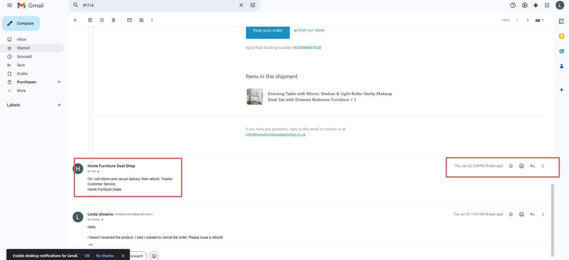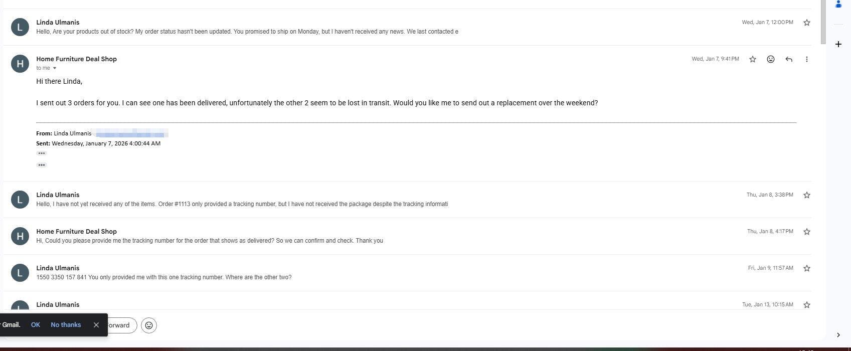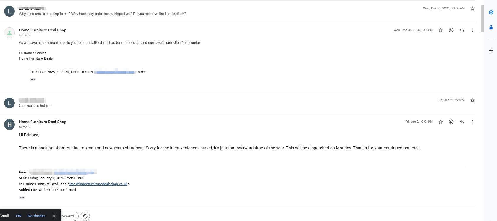 If more than 15 business days have passed since we’ve approved your return, please contact us at info@homefurnituredealsshop.co.uk.